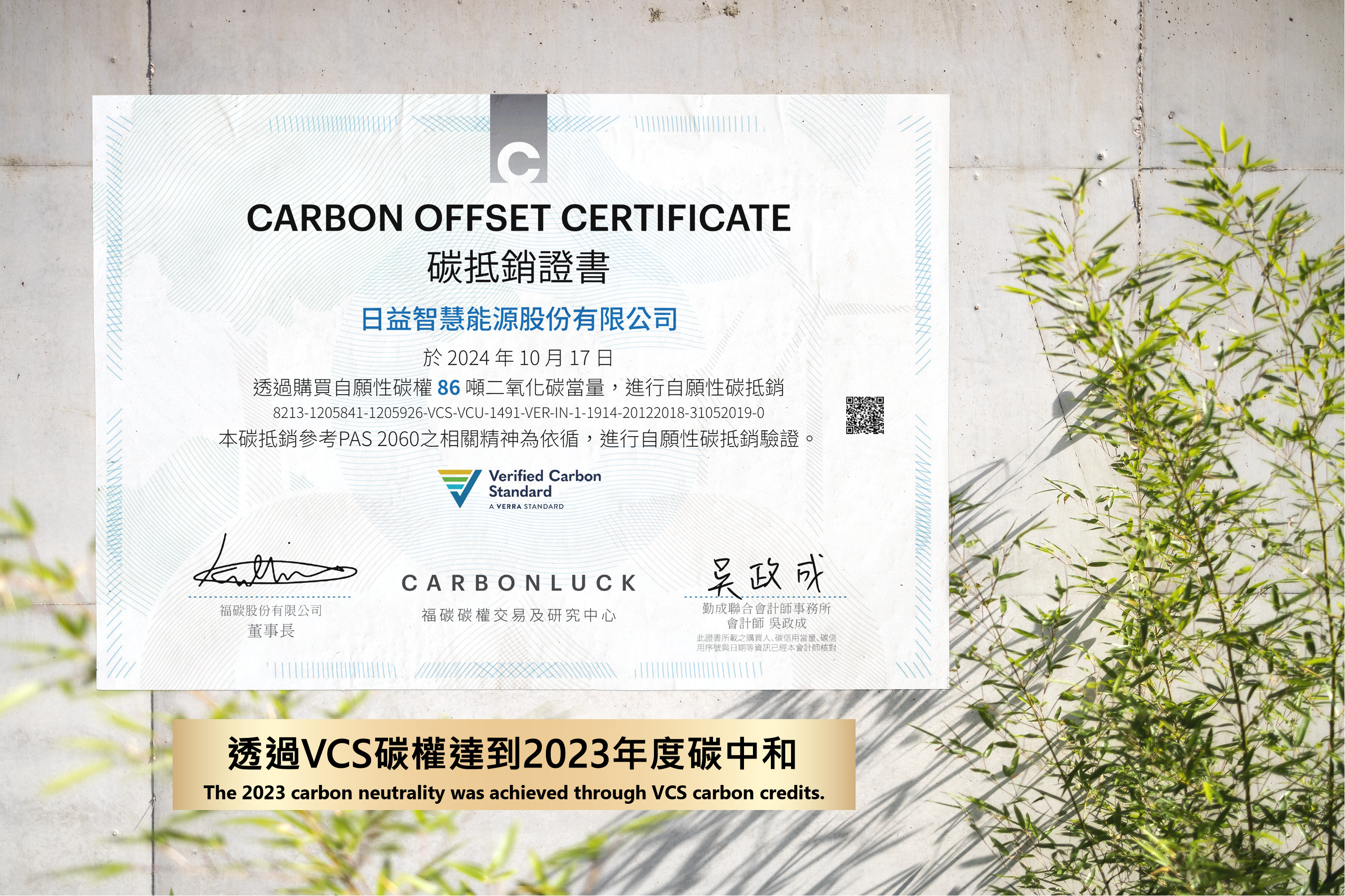 #CarbonNeutrality In partnership with CARBONLUCK, we purchased VCS carbon credits to offset emissions, officially achieving our 2023 carbon neutrality target and securing a PAS 2060:2014 carbon neutrality verification statement from Taiwan Electric Research & Testing Center.